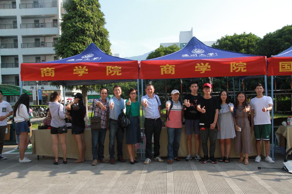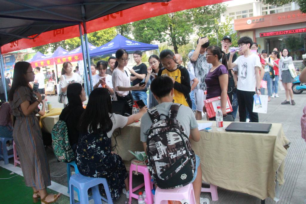 迎新志愿者队伍准时在商学院迎新大本营等候新生的到来,为他们提供报到注册、一卡通领取、寝室入住办理等一站式服务。