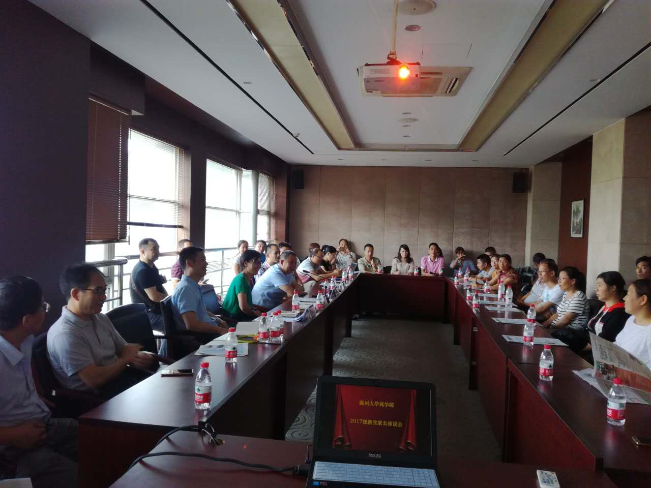 2017级新生家长见面会于北校区信息楼A307会议室举行。院长胡振华、党总支书记郑彩莲、副院长罗建利、副书记刘开练、学生科科长白延虎、各新生班班主任及40余位新生家长代表参加了此次会议。会议由刘开练副书记主持。