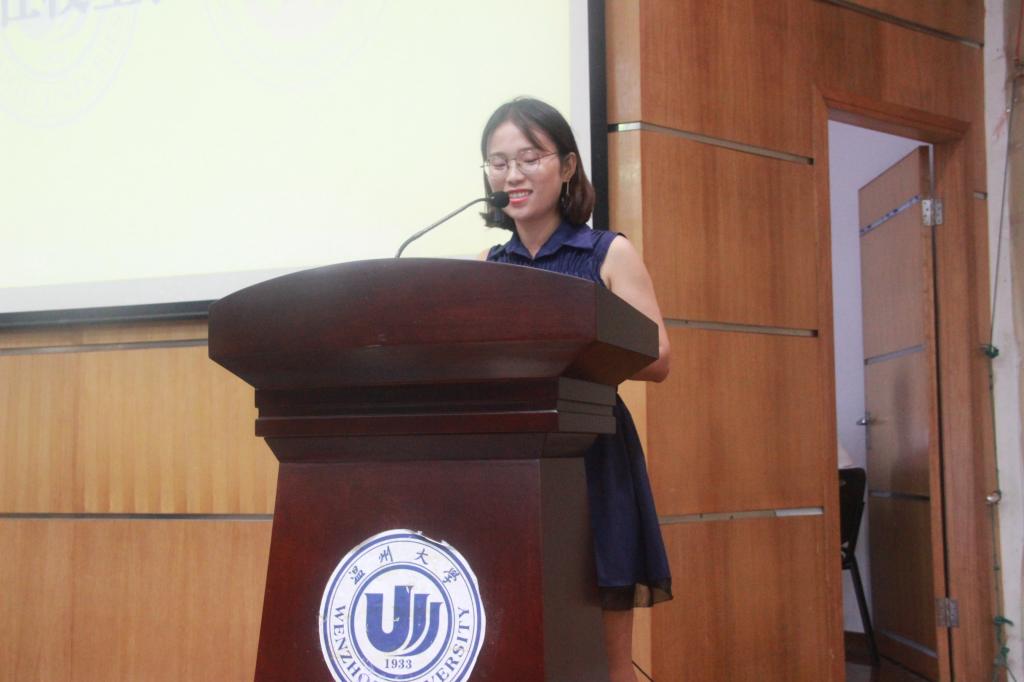 教师代表张滢博士在发言中指出大学的学习是研究性学习,相较于中学的学习更侧重于专业素养与研究能力。她以"精专业、强外语,能创新"九字表达了自己对于新生的期望与要求。同时,她也勉励新生学习青年博士的专注与勤勉,努力做到“聚是一团火,散是满天星”。