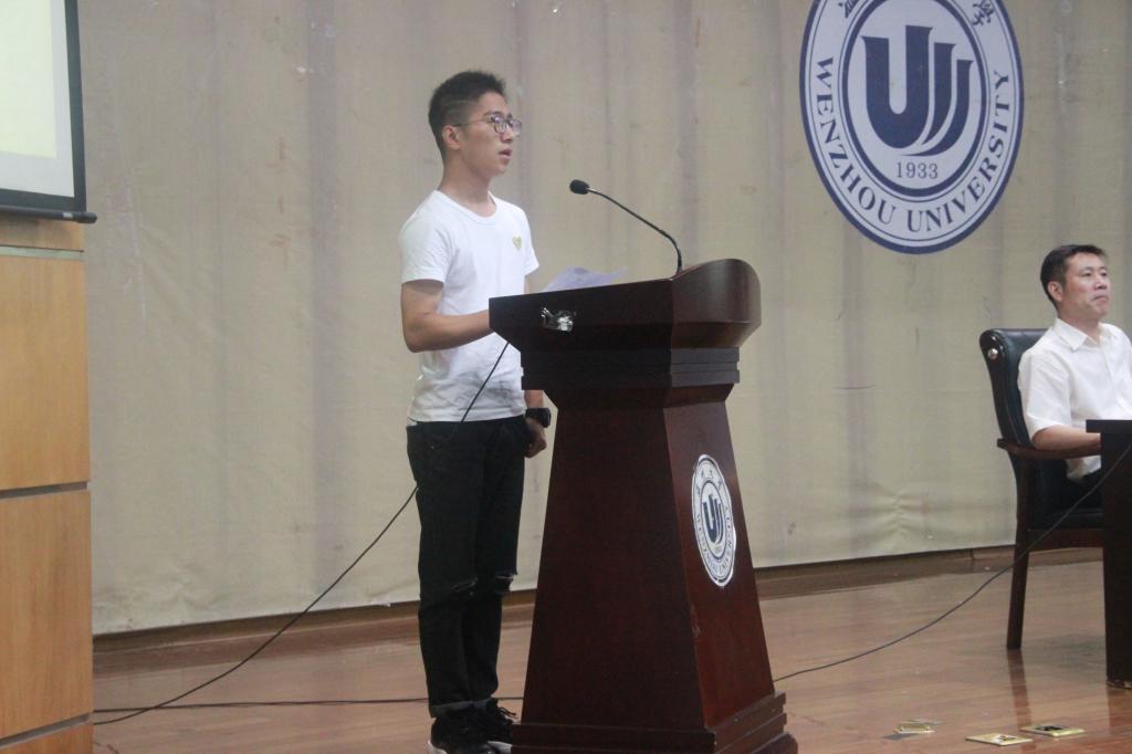 新生代表吕佳成同学畅谈自己从得知被录取后的激动与喜悦,并立志“今天我以母校为荣,明天母校以我为荣”。他对大学的憧憬和希望感染了在座的每一个人。