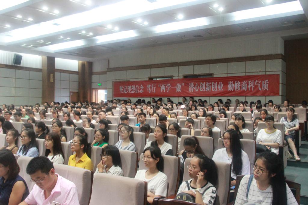会议最后,胡振华院长为新生上大学第一课。胡院长提出作为商学院的一名学生,应该拥有银行账户、网购账户、证券账户、护照四个户头;学好汉语、英语、计算机语言和数学四种语言;强调“行”的重要性,读万卷书,行万里路。他提出“花钱即赚钱”的观点,教导新生将财富由货币形态转换为知识形态。