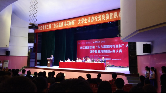 浙江省第三届“东方赢家同花顺杯”大学生证券投资竞赛团队赛的决赛于2017年10月29日在浙江省宁波大学隆重举行。本次竞赛是由浙江省教育厅、浙江省大学生科技竞赛委员会主办。同时,该比赛作为省A类竞赛,是证券投资项目中的顶级赛事,协办单位云集各大著名金融机构。