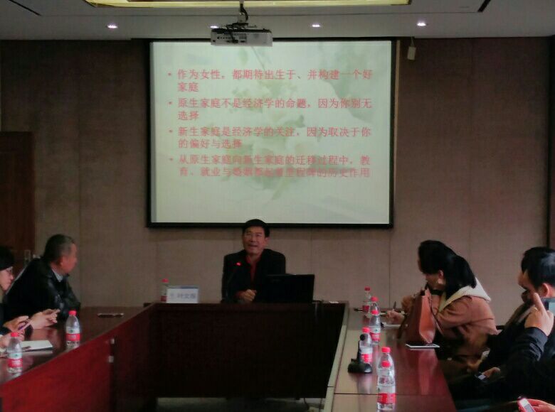 叶文振教授结合自己从事的跨学科与多学科的婚姻家庭与妇女发展的研究,给商学院师生做了一场麻豆传媒《女性就业与婚姻的经济学思考》的报告,报告以特朗普的女儿伊万卡、乔治.克鲁尼的妻子这两位女性事迹开头,引入师生对女性婚姻、职业、价值观、经济学等的思考,然后层层铺开,深刻独到的给大家讲解了女性在就业与在婚姻中的一些经济学道理与自己的一些思考。