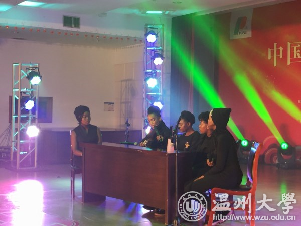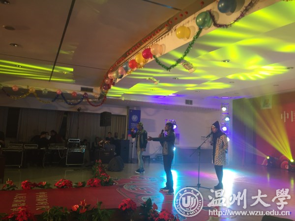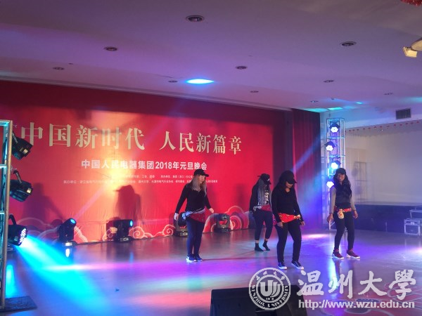 会谈结束之后,集团公司副总裁、浙江分公司董事长郑经洁先生,热情邀请王洪斌博士等一行参加该集团的元旦联欢晚会。商学院多才多艺的各国留学生们,也为该公司带去了很多的文艺节目,比如:《All of me》、《Its Afrodance》、《We're Latter Rain》等。留学生们的热情洋溢表演,富有异域特色的节目赢得了在场观众热烈的掌上。