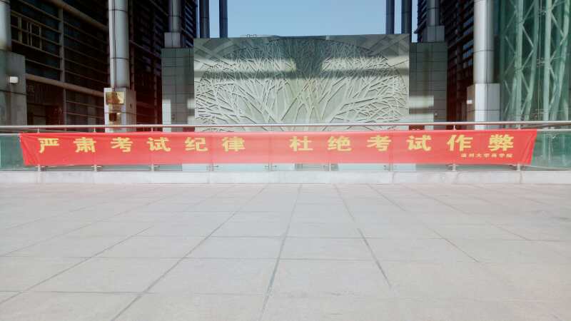 在学院入门电子屏处与信息楼平台处,均已张贴"严肃考试纪律,杜绝考试作弊"的标语。同时,麻豆传媒