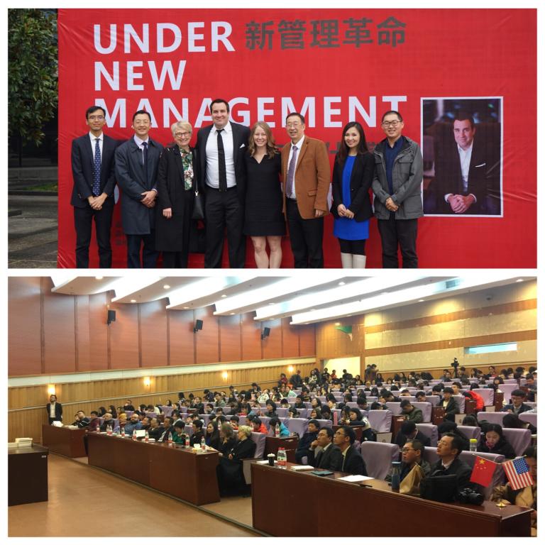 2018年3月18日,TED演讲者,美国ORU(Oral Robert University)大学David Burkus教授,来到温州大学育英图书馆给温大学子带来了题为UNDER NEW MANAGEMENT新管理革命的精彩演讲。温大育英图书馆报告厅座无虚席。