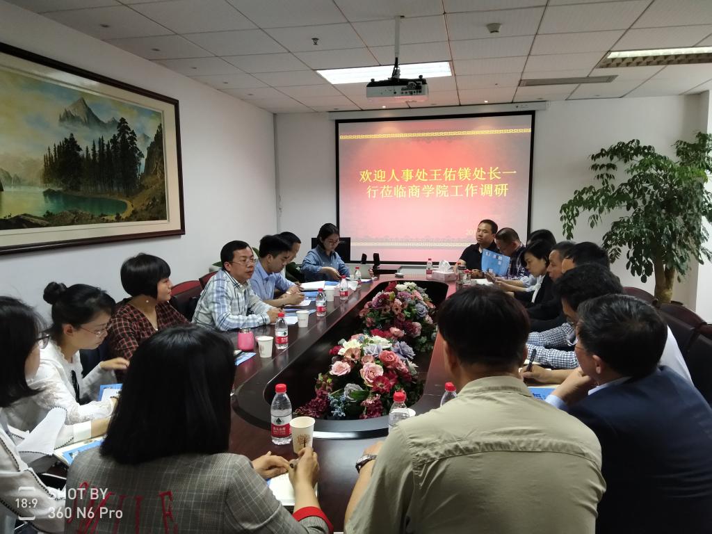 首先,胡振华院长向王佑镁处长一行汇报了商学院近一年来在师资引进、国际化办学等方面取得的成果,对人事处领导和同事在师资引进、职称评定等给予的大力支持表示由衷的感谢。
