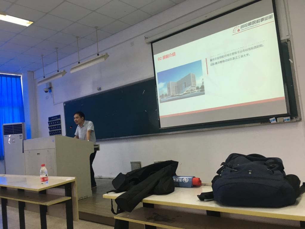 为了更好地让各温州大学的学生了解今年大赛及取得更好成绩,2018年5月16日,浙江省大学生证券投资委员会派出以同花顺饶龙朋为领队、同花顺马特、东北证券陈玉玺、柯景挺等为成员的专家组来我校进行专场讲座,讲座于13点30分在北校区3号楼402教室进行,参加比赛的部分同学前来听讲。