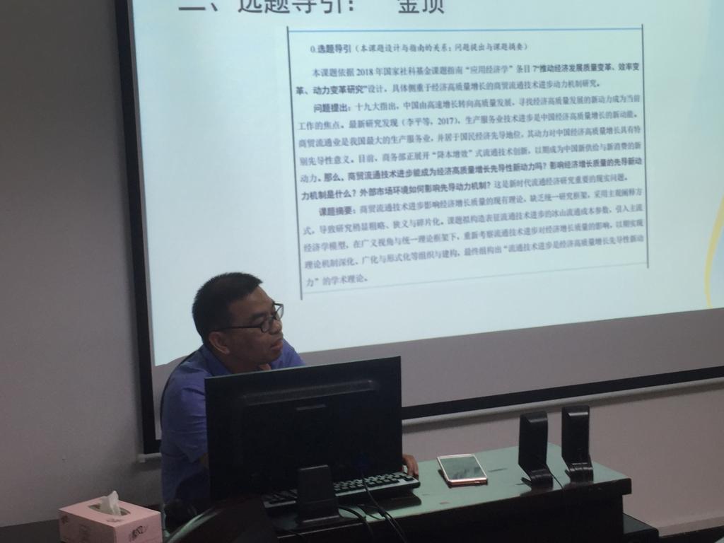 继沙龙、名家讲坛之后开辟的学术活动新系列。本次主讲嘉宾为2018年国家社科基金年度项目负责人杨龙志副教授和罗军博士,主题为国家基金项目申报经验分享。活动由林俐副院长主持,胡振华院长、郑彩莲书记、学院十多位青年骨干老师和新引进博士到会。