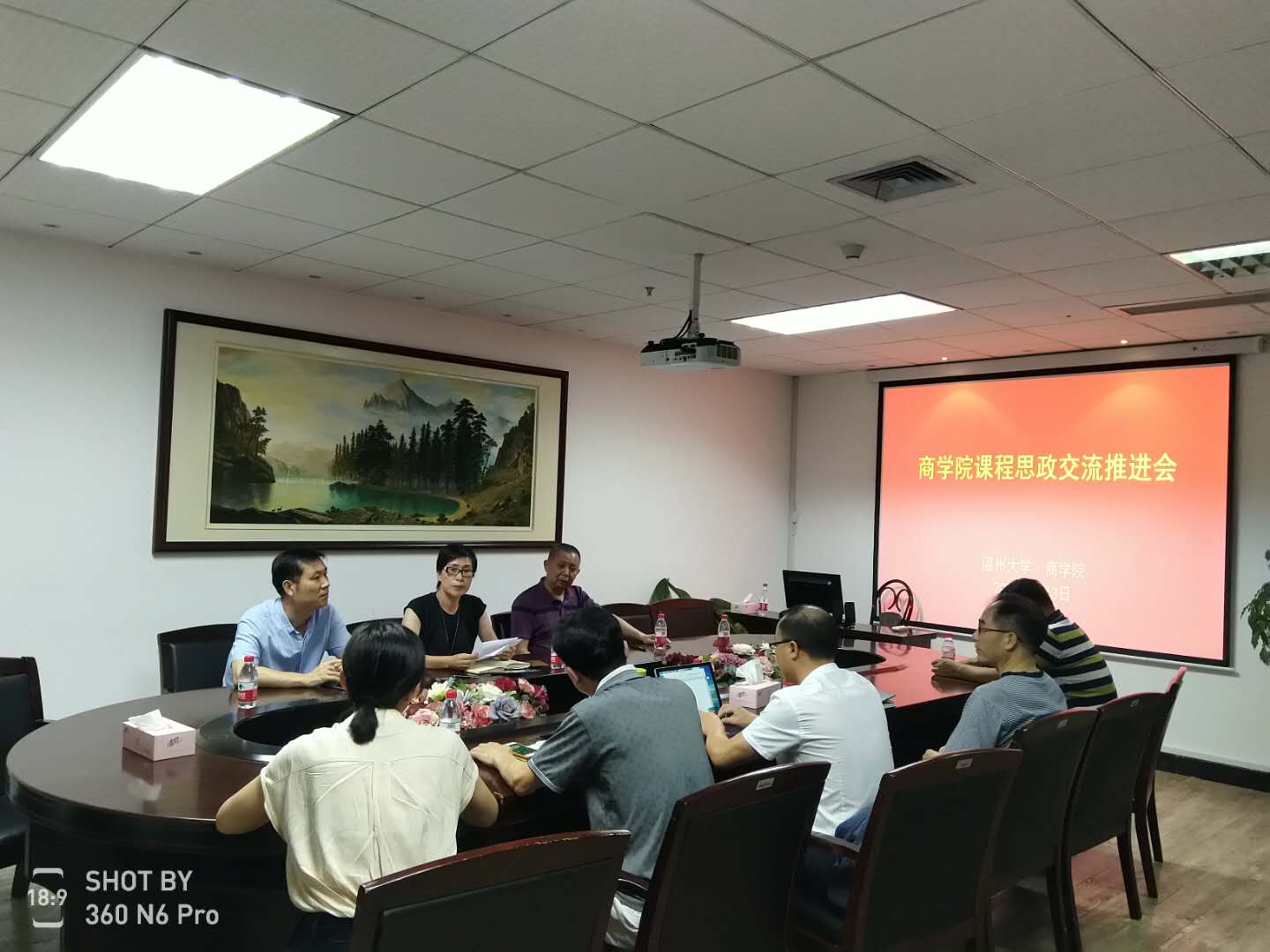 2018年7月3日,温州大学商学校召开课程思政交流推进会。商学院院长胡振华、院党支部书记郑彩莲、副书记刘开练出席了会议。部分课程思政建设项目负责人、团队成员及教学科相关人员参加会议。