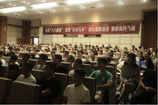 会议最后,胡振华院长为同学们上了以《大学时代的四个四》为主题的新生第一课。他说大学生应该开通网银账户、网购账户、证券账户、护照四个户头;学好汉语、英语、计算机语言、数学语言四种语言;处理好与同学、与老师、与家长、与社会的四种关系。在提高课堂效率的同时合理利用好空余时间,可多利用图书馆资源提升自身素质,亦可与好友亲人结伴同行扩大视野。