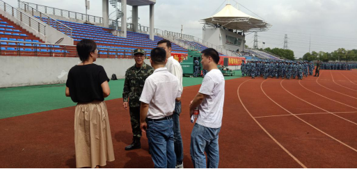 新生训练工作的教官致以衷心的感谢。刘开练书记同在休息期间的新生进行了亲切的交谈,耐心询问,细心聆听。除此之外,学院为了照顾学生的身心健康,特别安排了班主任执勤,每天都会有班主任到训练场地了解军训进程。