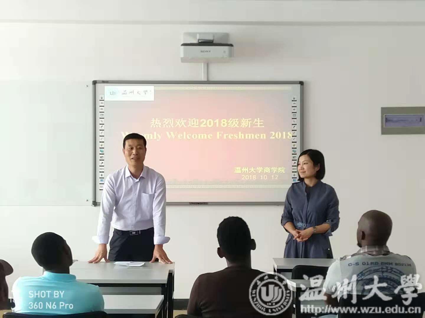 2018年10月12日,商学院在北校区国际楼303教室举行国际学生欢迎会,来自18年级的留学生代表与商学院领导、老师、国际学生干部欢聚一堂,一起畅谈在商学院的学习、工作和愿景。学院领导刘开练、国际部教师王露、留学生专员徐世伟参加了此次欢迎会,商学院留学生学生会成员列席了会议。