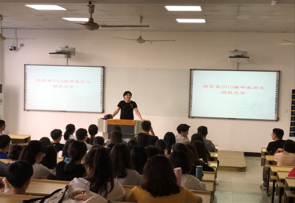 2018年10月9日下午,温州大学商学院国贸系2019届毕业论文动员大会在北3-201教室顺利召开。本次动员大会由国贸系马媛老师主持,15国贸本和17国贸专升本班级的学生参加了本次大会。