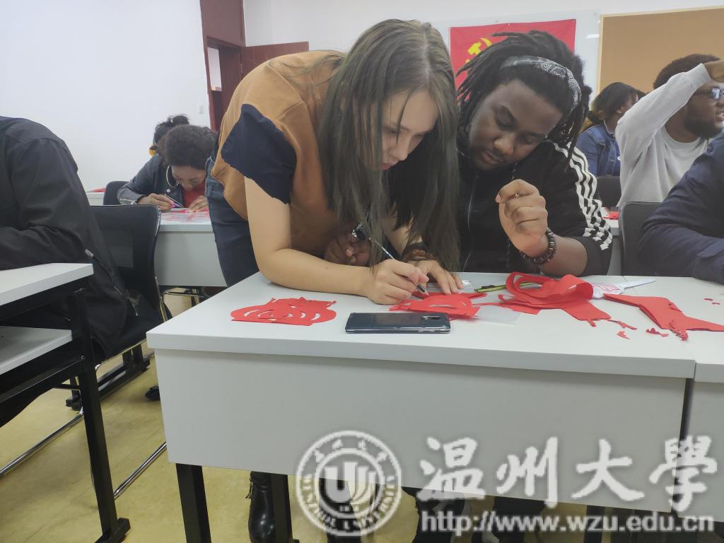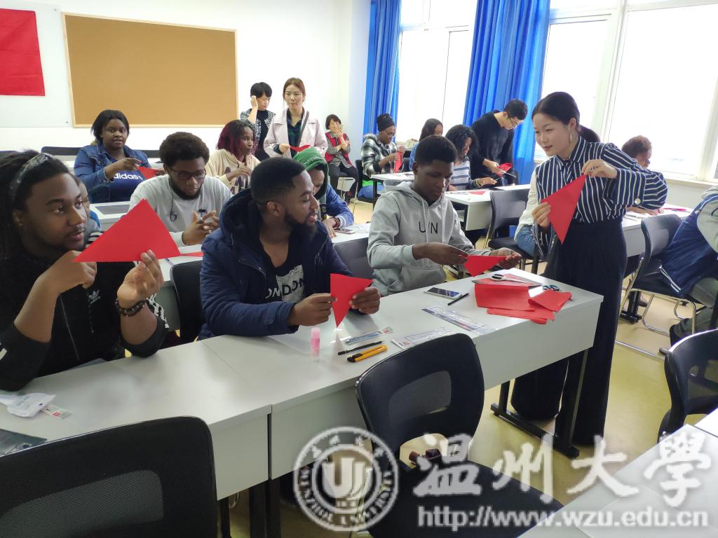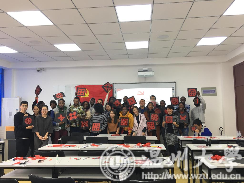 为传承并发扬中国传统文化,丰富留学生校园文化生活,2018.10.22下午,温州大学商学院结合自身国际交流特色与美术与设计学院合作开展了以中外剪纸文化交流为主题的联谊活动。出席本次活动的领导有美术与设计学院党总支副书记杨振海、商学院党总支副书记刘开练、商学院国际部主任王洪斌以及商学院教师吴海蓉。