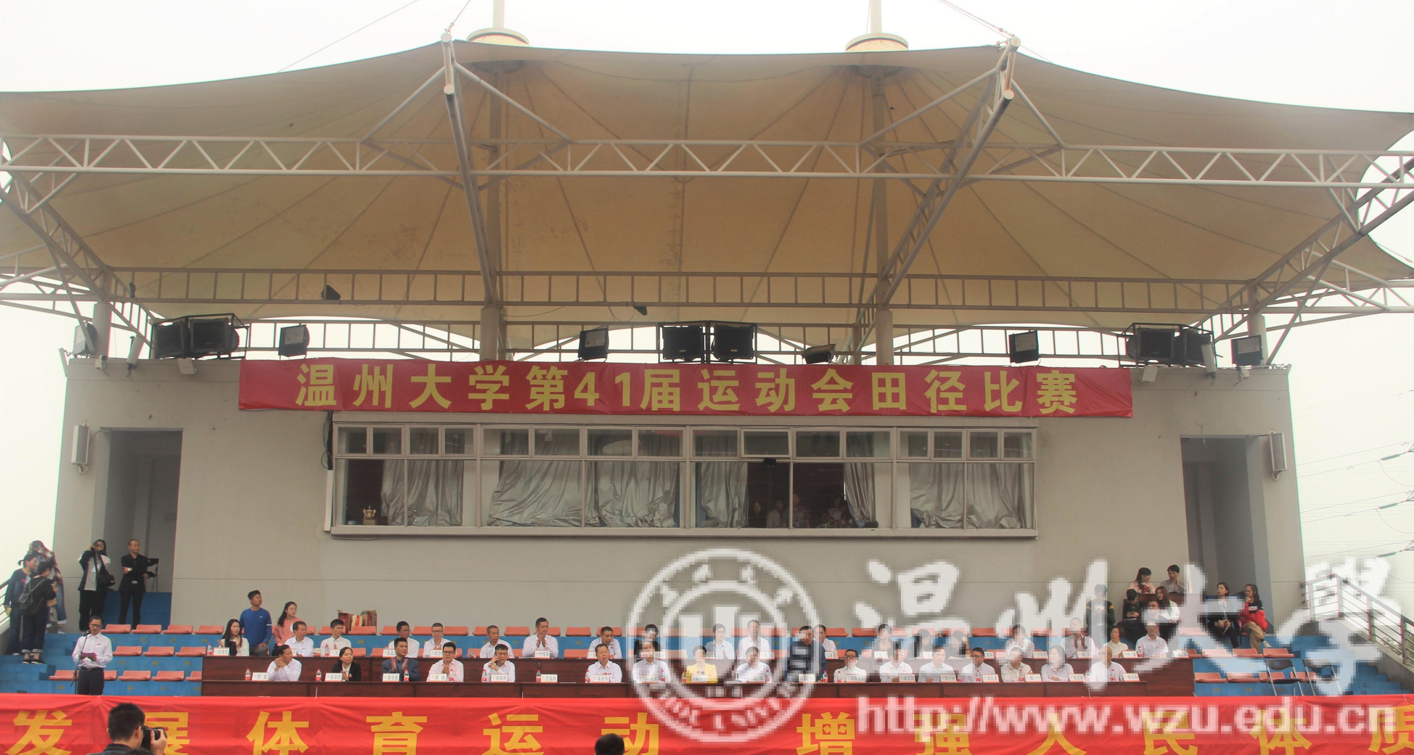 一个接一个的方阵陆陆续续地走过,温州大学第四十一届校运动会也接近了尾声。在赵敏校长开幕致辞,运动员代表麻纯洁同学和裁判员代表李炎老师宣誓后,运动会正式开始!