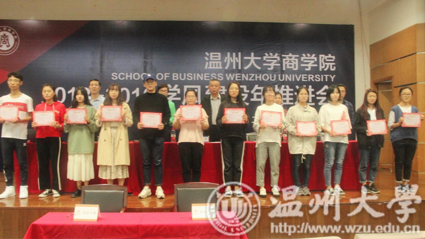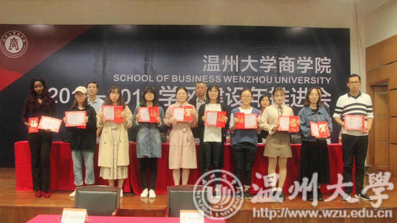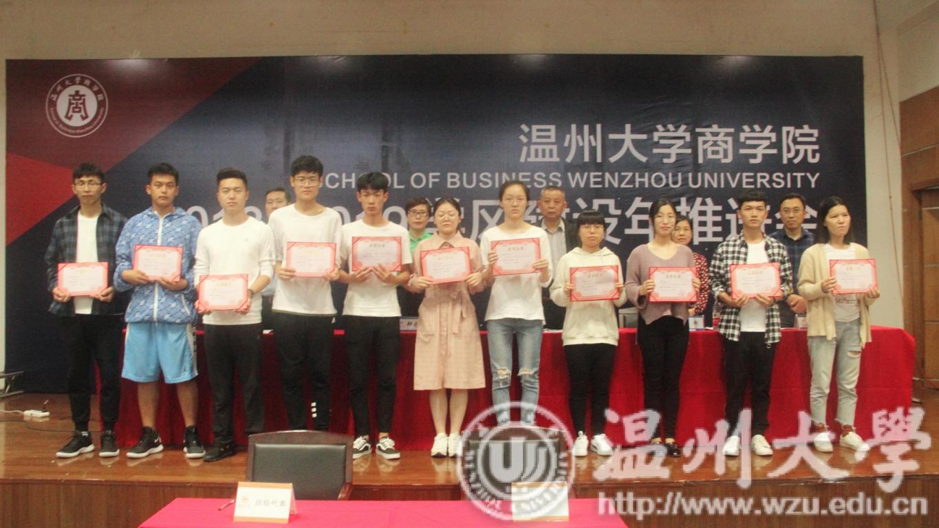 与会领导为2018年首届温州大学商学院“博联奖学金”获得者颁发了奖金和荣誉证书。“博联奖学金”由麻豆传媒