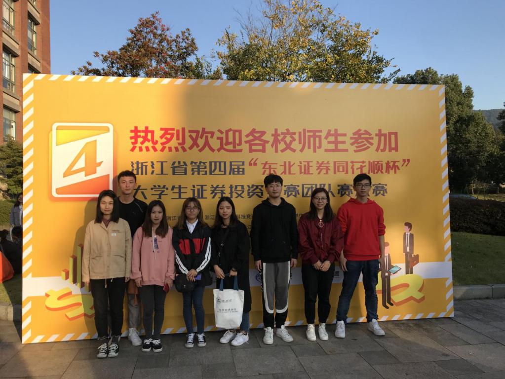 浙江省第四届“东方赢家同花顺杯”大学生证券投资竞赛团队赛的决赛于2018年11月10日在浙江省工业大学隆重举行。本次竞赛是由浙江省教育厅、浙江省大学生科技竞赛委员会主办。同时,该比赛作为省A类竞赛,是证券投资项目中的顶级赛事,协办单位云集各大著名金融机构。