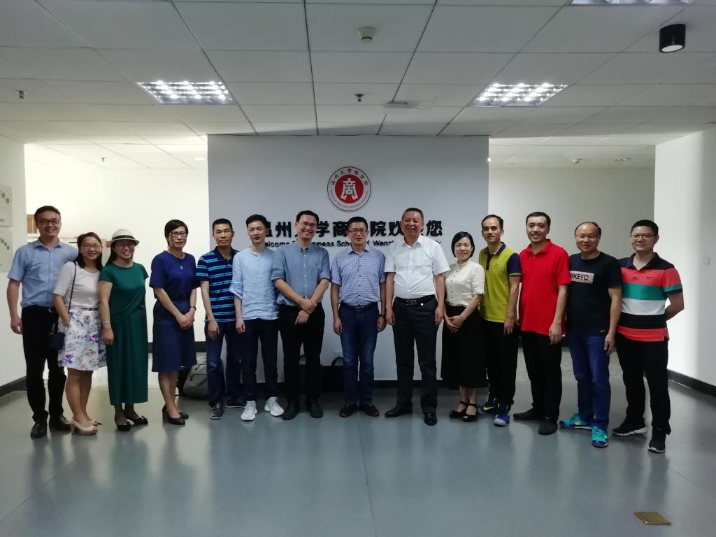 2019年6月4日 下午,温州市委政研室胡志刚副主任一行做客商学院,专题调研与高校合作交流情况。商学院院长胡振华率学院领导班子接待了调研组,并在A222会议室举行座谈会,各研究构负责人及科研骨干参加了会议。