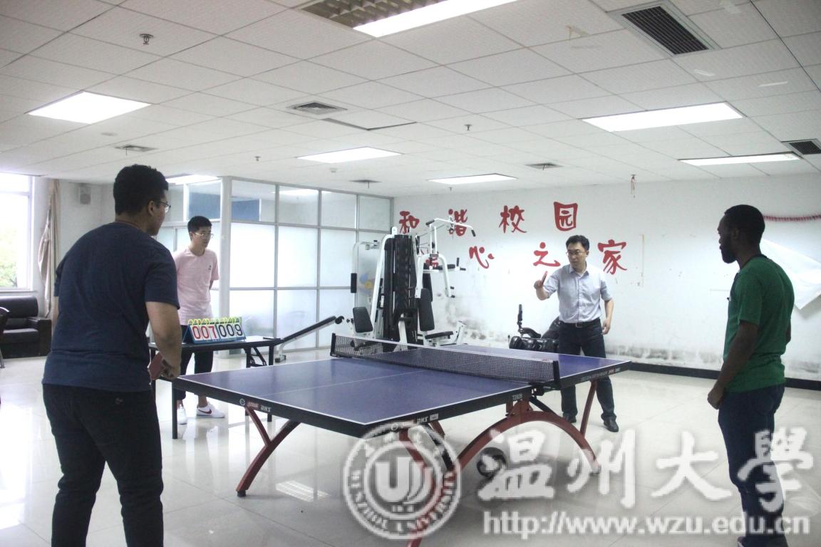 为拉近师生距离,帮助留学生更好地融入校园生活,同时丰富其课余生活,商学院于6月12日下午两点在商学楼A226举办师生趣味乒乓球比赛,学院众多老师及留学生参加了本次活动。
