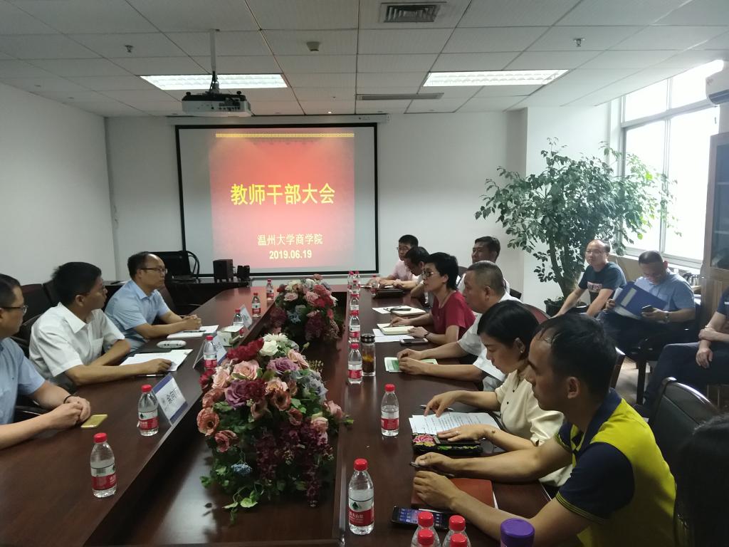 校党委副书记庄兴忠宣读校党委任命文件。党委任命唐华担任温州大学商学院党委副书记、纪委书记;余向前担任温州大学商学院副院长;刘开练不再担任温州大学商学院党委副书记、工会主席;林俐不再担任温州大学商学院副院长职务。