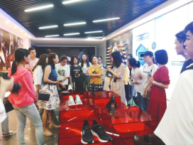 接着我们了解到了康奈集团有关品牌营销,科技创新,匠心智造,多元产业等方面的内容。其中让我最印象深刻的便是它们的工艺手法,分别是匠心之魂、极致尊享的固特异成型工艺,无胶速型、健康环保的缝翻成型工艺,传承百年、演绎经典的传统胶粘成型工艺和一体套帮、呵护自由的套班胶粘成型工艺,我想这就是一种工匠精神吧,这或许也是康奈的鞋子质量好、舒适所受众多人喜欢的原因。我们也可以看到,在小姐姐细致生动的讲解下,我们国贸班的同学听着也是十分认真呢!