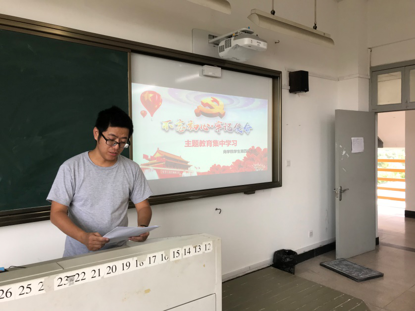 2019年9月24日,星期二,商学院学生第四党支部在北3-406举行了以“牢记初心使命,推进自我革命”为主题的集体学习大会。出席大会的有商学院第四党支部书记黄汉老师以及全体学生党员。