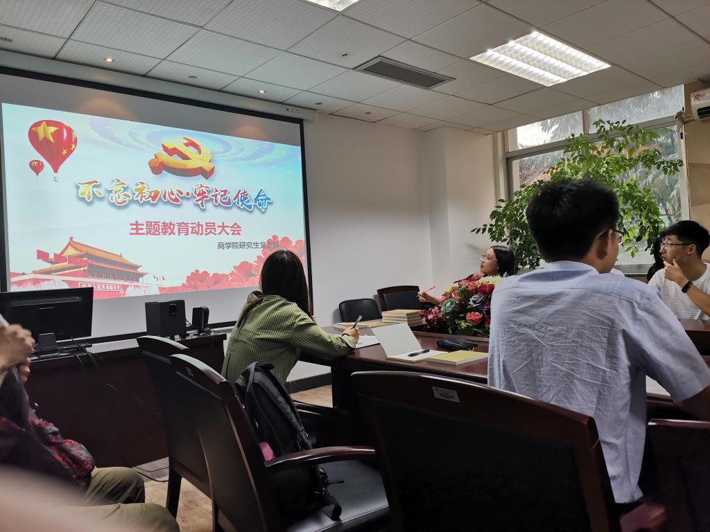 随后,韩老师整体介绍了党支部组成情况,并对研一新党员张静茹、陈慧倩、王钰洁、梁城超、李泽浩、金伟男以及预备党员王海胜同学的加入表示热烈欢迎。她强调,新鲜血液的加入代表新的力量,商学院研究生党支部在壮大的同时还应响应主题教育要求,深入群众之中,切实做到“不忘初心、牢记使命”。