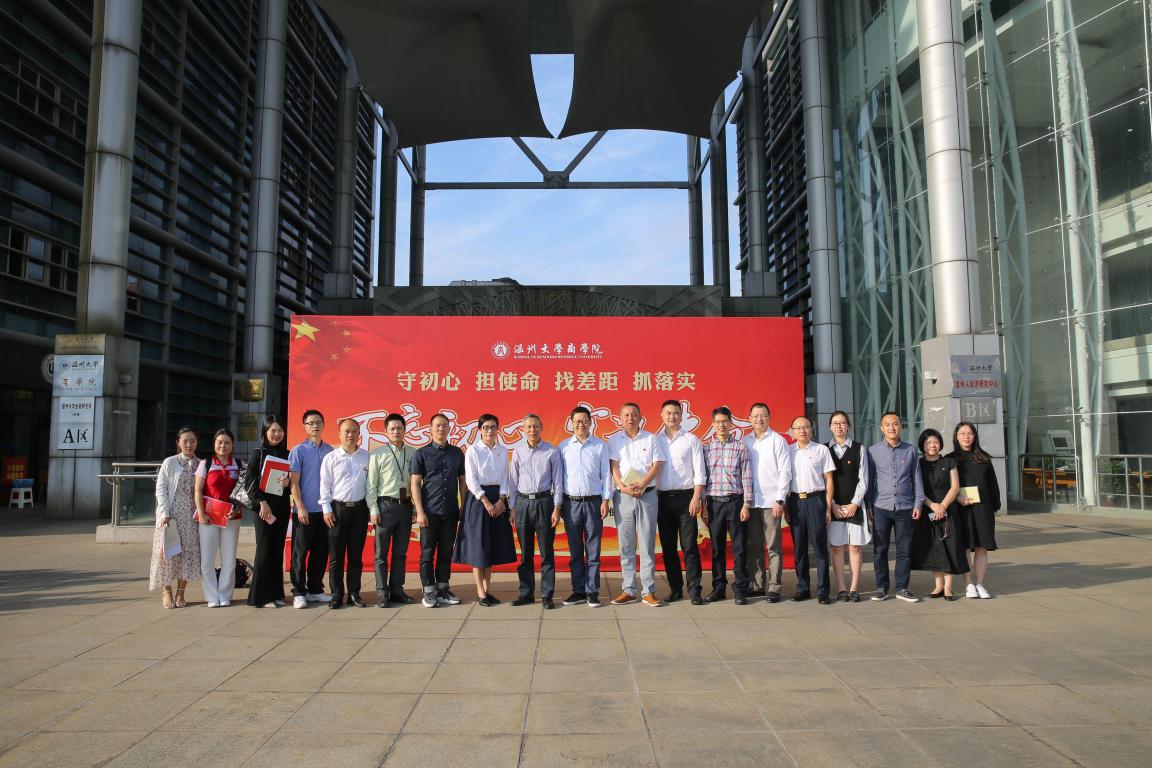 为认真贯彻“不忘初心、牢记使命”主题教育工作座谈会精神,更好地推动主题教育走深走心走实,10月16日下午,在商学院A222会议室召开了温州大学“不忘初心、牢记使命”主题教育座谈会。省委“不忘初心、牢记使命”第十五巡回组领导吴金良、吴南丰、姚春峰等、学校组织部部长郑信军,机关党委书记、校党校常务副校长、副部长金庆良、副部长李祖祥,商学院党委书记郑彩莲、院长胡振华、党委副书记唐华、副院长余向前和师生党支部书记出席了本次会议,会议由郑彩莲主持。
