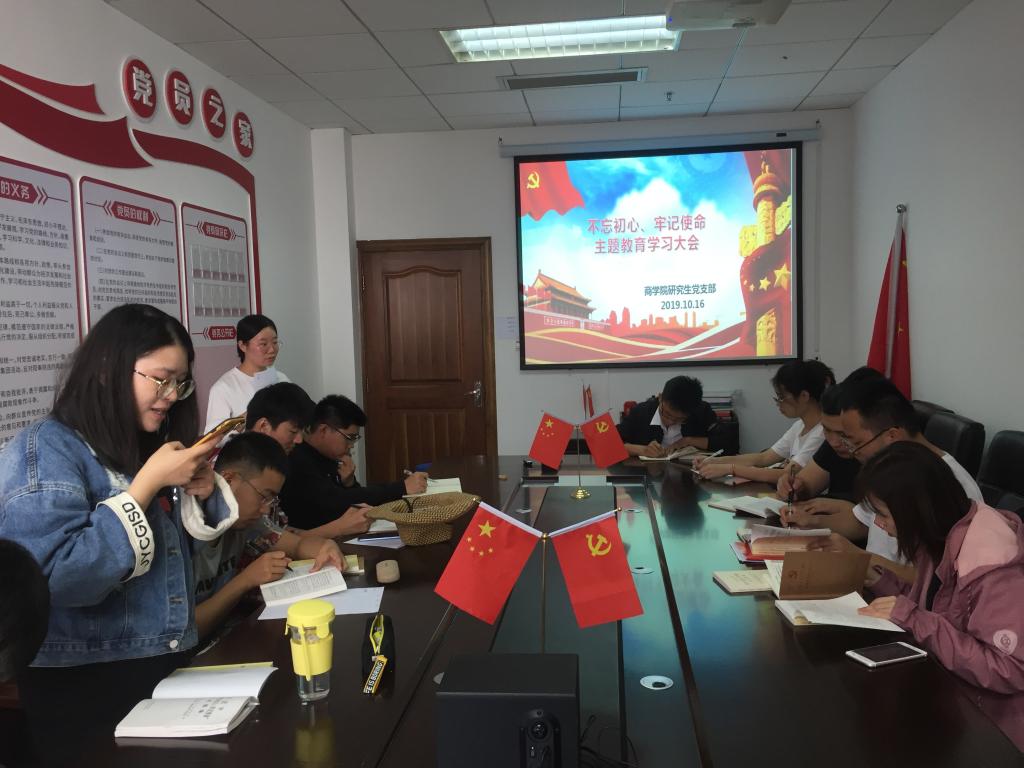 2019年10月16日下午,温州大学商学院研究生党支部召开了“不忘初心、牢记使命”主题教育学习会议和麻豆传媒拟发展对象答辩大会。