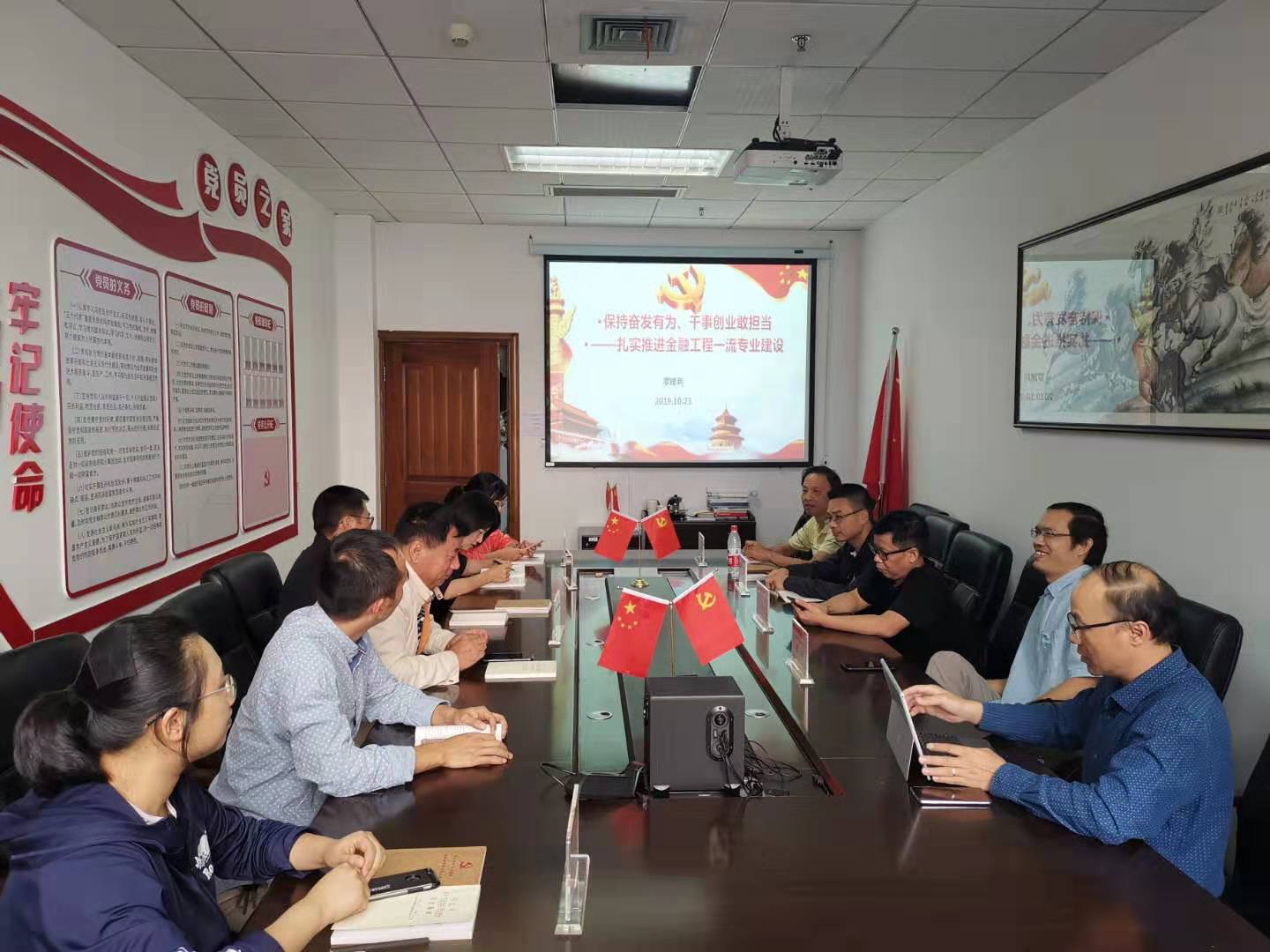 根据学校、学院和支部“不忘初心、牢记使命”主题教育工作安排,10月23日中午,商学院副院长罗建利和教工第一支部书记周建华在A223党员之家为支部党员同志上党课,内容分别为《保持奋发有为、干事创业敢担当——扎实推进金融工程一流专业建设》《践行“两山”理论,打造美丽中国》。