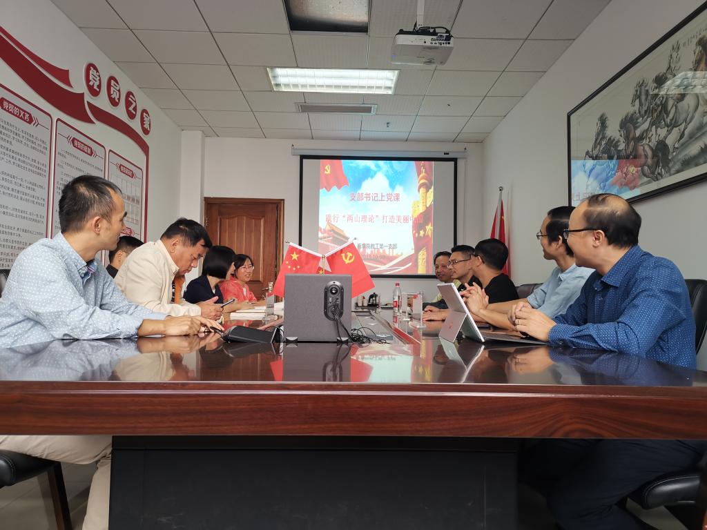 支部书记周建华按照支部“七个一”安排,结合习近平新时代中国特色社会主义思想的绿色发展理念,分别从“两山”理论的缘起、内容和意义,分析其在中国、浙江和温州的实际应用,展望绿色经济在高质量发展中的远景。