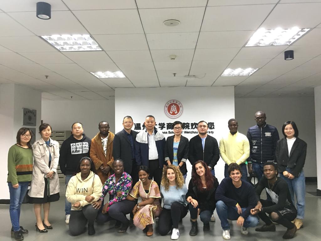 金秋十月,温州大学商学院迎来首届国际硕士研究生新生。2019年10月28日下午,在商学院A222会议室召开了国际硕士研究生见面会,商学院院长胡振华、党委书记郑彩莲、副院长罗建利、余向前,国教部主任徐正、国际研究生负责人王露以及全体应用经济学(创业管理)硕士研究生新生出席了会议。