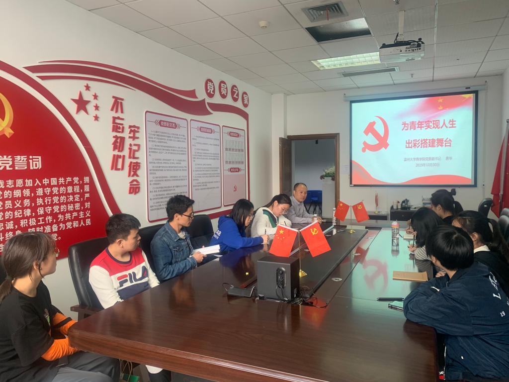 10月30日下午,商学院党委副书记唐华老师在党员之家主讲《为青年实现人生出彩搭建舞台》的主题党课,全体学生支部支委成员出席并认真学习观摩。
