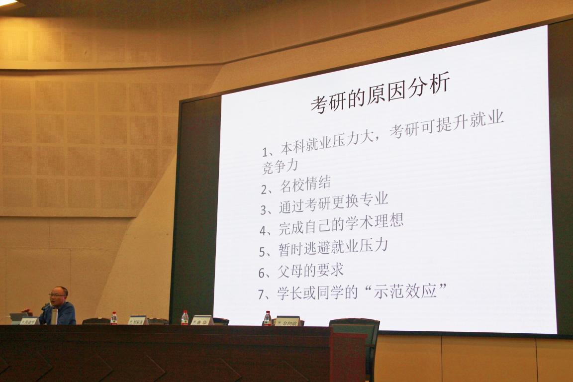 毕业生考研录取情况给不同专业的同提出了报考的建议。最后,周建华老师提出了五项考研要点,使同学们受益匪浅。
