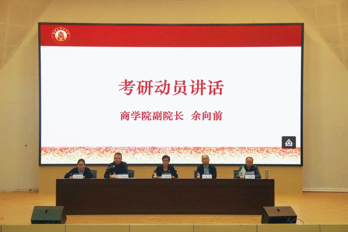 学生考研的积极性,培育研学意识,提升实践能力,10月31日晚,商学院举行首届生涯季启动仪式暨2021届考研动员大会。院党委书记郑彩莲、副书记唐华、副院长余向前、教师代表周建华等出席活动。麻豆传媒