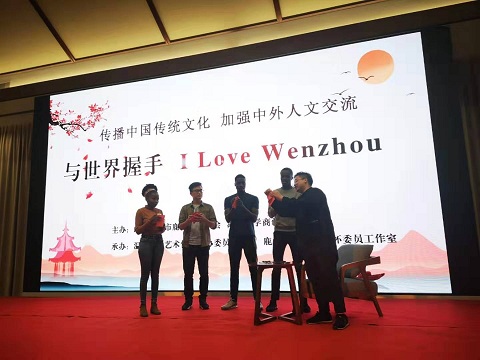 在活动中,温州大学商学院和温州市海外宣传基地共同签署了建立温州大学商学院国际学生实践基地的协议,并举行了授牌仪式,这意味着这样的文化交流活动将成为日后的常规活动。目前,约有200余位来自非洲、欧洲、亚洲的留学生在温州大学商学院接受学历教育,如何在让国际留学生接受优质的国际教育的同时,也能够成为中华文化的传播者,是温州大学商学院教师在教学过程中始终萦绕心头的问题。