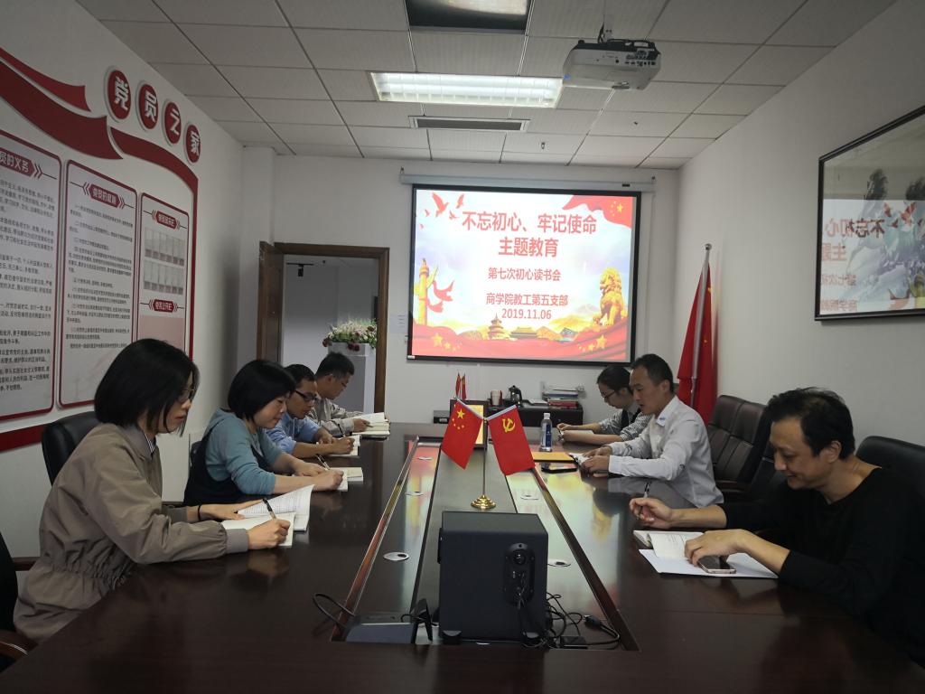为深入学习“不忘初心、牢记使命”主题教育,认真贯彻中央主题教育精神,商学院教工第五党支部于2019年11月06日下午在学院A223会议室召开第七次初心读书会。