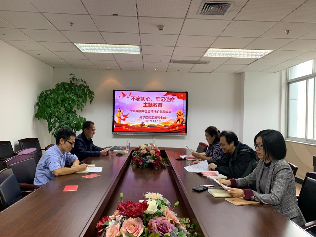 为深入学习“不忘初心、牢记使命”主题教育,认真贯彻中央主题教育精神,商学院教工第五党支部于11月13日下午在学院A222会议室召开第八次初心读书会。