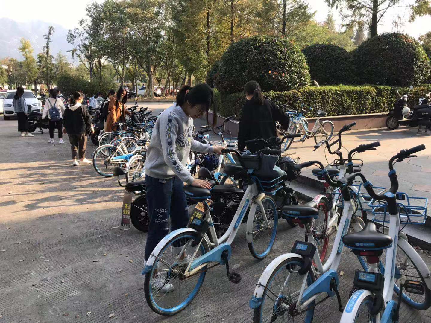 2019年11月19日,星期二,商学院学生第四党支部的所有发展对象在大学城展开共享单车整理志愿活动,为学校师生做实事好事。在阳光下,传递着他们的志愿服务精神。