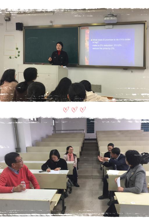 本次活动一共有十五位教师参加,教学副院长、各系主任、督导、专业教师经过两周的听课和评课,最终推选马媛、龚军姣、金必简和倪婧四位教师代表学院参加学校的课堂教学竞赛,预祝这四位教师能在接下来的竞赛中取得佳绩!