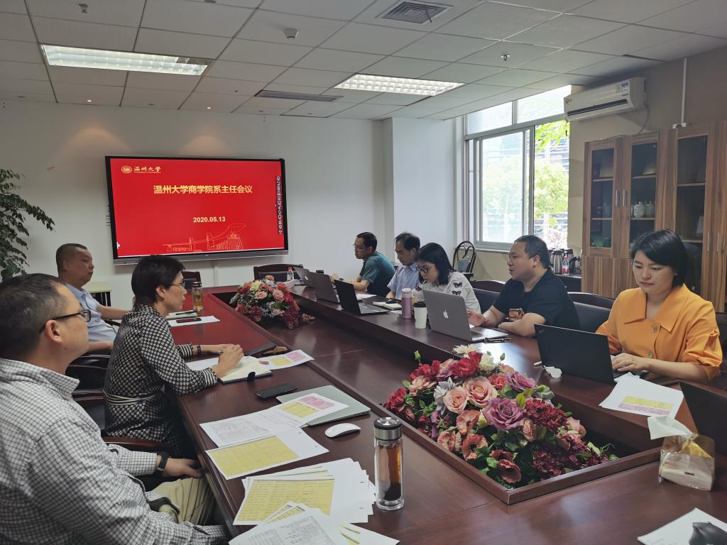 2020年5月13日下午1点半,在A222会议室商学院召开系主任工作会议,学院院长胡振华、学院党委书记郑彩莲、教学副院长余向前以及各系主任、教学科老师等出席会议,会议由学院教学副院长余向前主持。