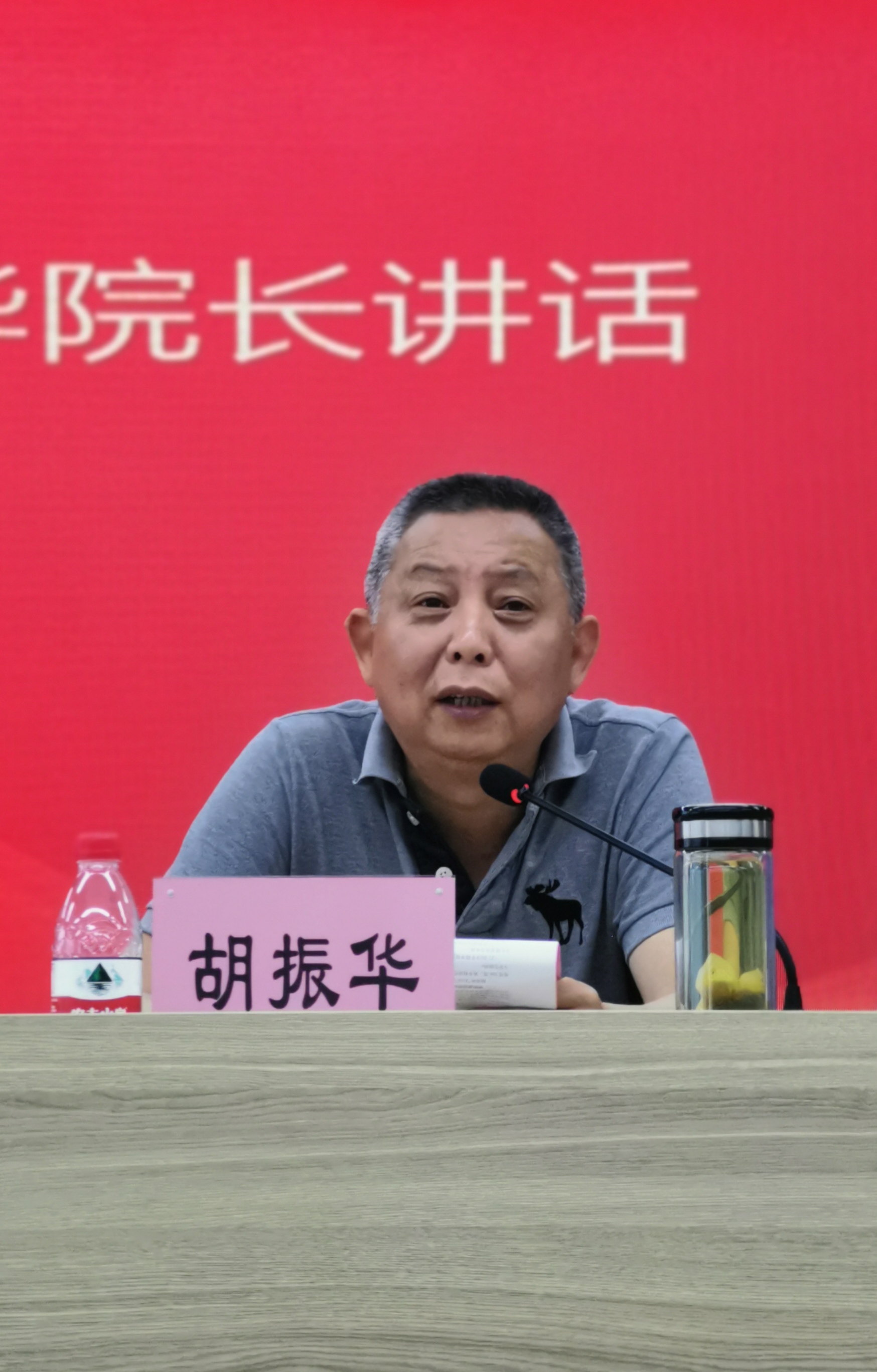 胡振华院长做总结讲话,他分析了学院目前的招生、学科建设、专业建设、国际化专业建设、人才引进等形势,但在学院总体趋稳向好的形势之下,仍需要用战略性的眼光向更高的目标前进。同时,院长也提到商学院要极力推进“产教融合,服务社会”,继续推动非学历教育培训基地建设。最后,院长鼓励全院教职工,“志高山峰矮,路从脚下伸”。