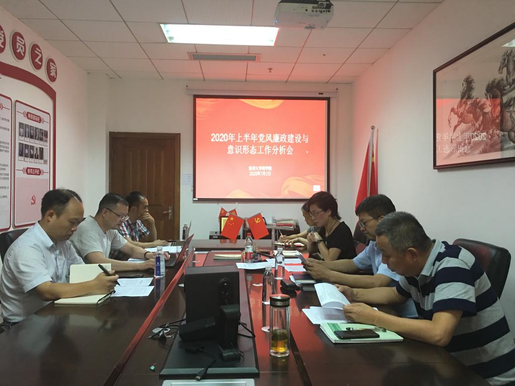 唐华副书记、郑彩莲书记分别就学院2020年上半年的党风廉政与意识形态建设情况做了总体说明。2020年上半年,商学院在巩固主题教育成果的基础上,坚决贯彻落实学校疫情防控部署要求,坚持防控和发展两不误、两战赢;学院纪委认真履职,抓紧抓实抓实疫情防控和学院发展监督工作,开展学院党风廉政建设,推动全面从严治党向纵深发展;深化清廉商院建设,构建符合学院实际的党风廉政建设和廉政风险防控体系。2020年上半年,学院党委严格落实意识形态工作主体责任,不断增强学院工作的针对性、时效性、安全性,不断加强学院党委的组织领导,定期分析研判本单位的意识形态风险点,严格把好意识形态工作的12个关口,分解压实意识形态任务清单,统筹推进意识形态工作和学院事业发展各项工作。