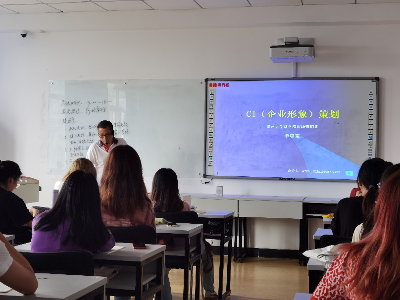李忠宽老师的CI企划课,从一身年轻又正式的白色形象装导入,品牌从个人形象开始结合专业知识点进行深入浅出地讲解。