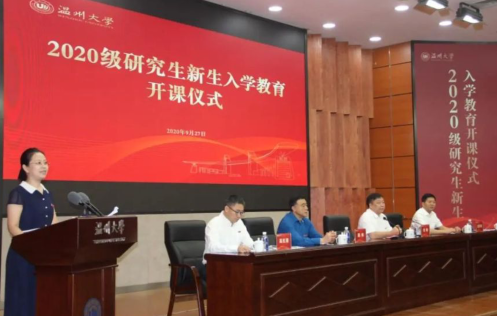 9月27日上午,2020级研究生入学教育在雁山厅主会场举行,商学院分会场在仲辉商道讲堂进行直播。开课仪式由刘玉侠院长主持。校长赵敏教授,党委庄兴忠副书记,副校长薛伟教授、研究生院刘玉侠院长、党委研究生工作部高红星部长在主会场出席始业教育。2020年是特殊又充满希望的一年,校长赵敏在表示对新生到来的祝贺和欢迎的同时,也向大家介绍了温州大学87年的办学历史,具体阐述了温州大学“俩校合并,七校融合”的历史变迁。介绍了黄溯初、金嵘轩、苏步青三位爱国、爱校者对温州大学办学史的付出和贡献。