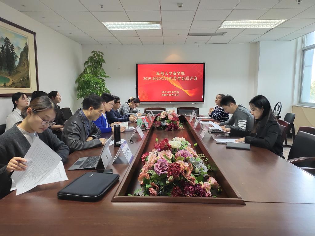 2020年10月23日下午,商学院开展2019-2020学年本科生省政府奖学金联评会,通过前期学生自主申请、学院初步审核,17级5位同学争夺最后3个名额,分别是17财管1杭佳男、陈培乐,17财管2祝思怡,17国贸方逸琳,17市销张莉。担任此次评委的有学院党委书记郑彩莲老师、市场营销系主任张启明老师、金融工程系蒲祖生老师、国际经济与贸易系陈文芝老师以及全体学生科辅导员。