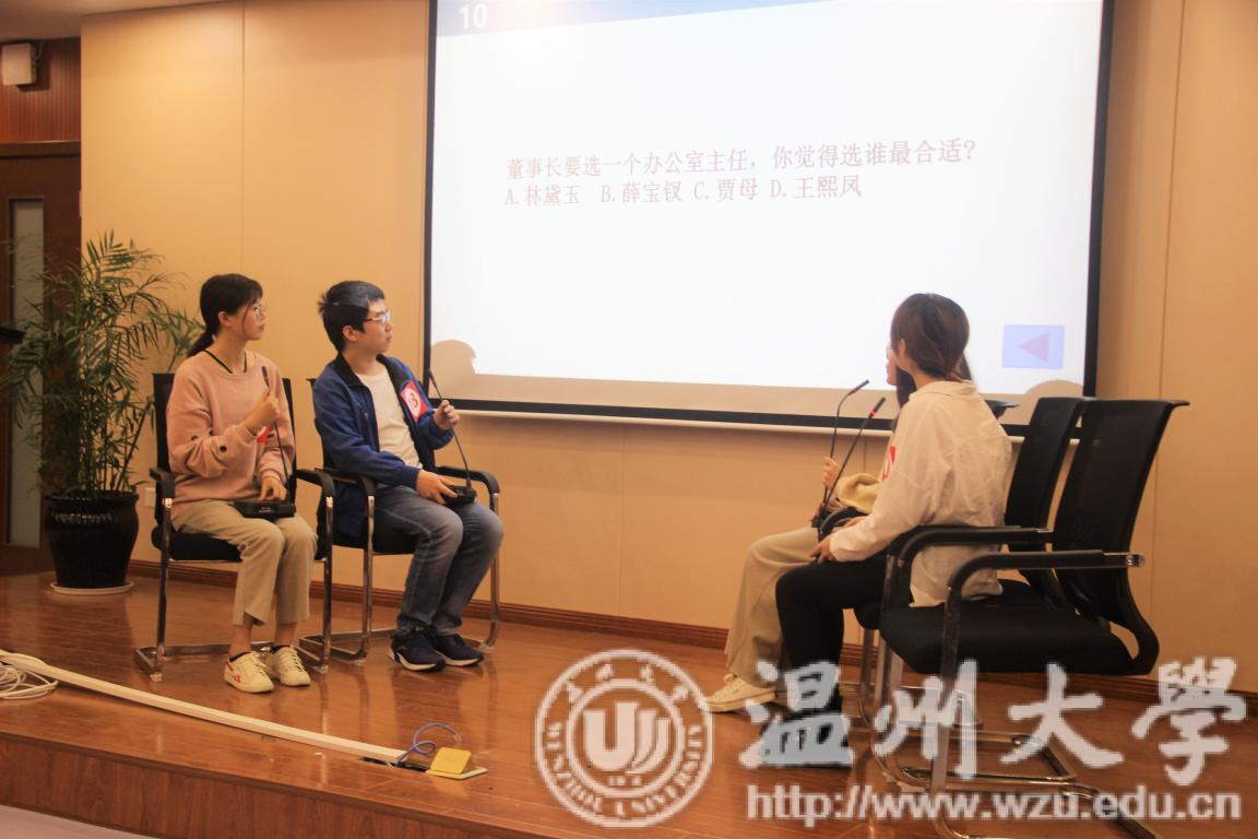 4月18日,温州大学五院联合模拟面试大赛复赛在机电学院A309教室顺利举行。本次比赛由商学院、数电学院、化材学院、机电学院和建工学院联合举办。本次面试大赛的目的是模拟人才市场竞争,指导学生做好职业规划,进一步提高我校学生的职业素质和求职能力。
